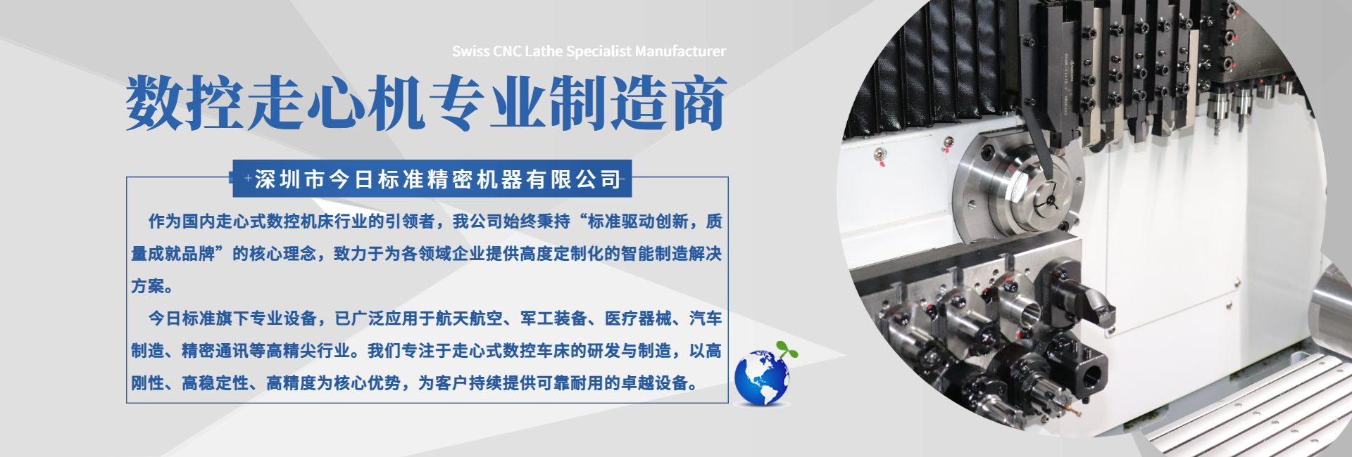 深圳市今日標準精密機器有限公司成立于2007年,經過多年的蓬勃發展,已經成為集走心式數控車床研發、生產、銷售、服務于一體的國家高新技術企業。